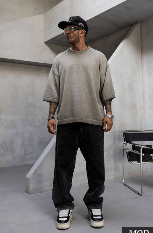 Bluza męska w odcieniu jasnej szarości o luźnym, nowoczesnym kroju inspirowanym stylem streetwear. Wykonana w 100% z bawełny — miękka, elastyczna i przyjemna w noszeniu. Dzięki zastosowaniu ściągaczy przy rękawach, u dołu bluzy oraz pod szyją, całość dobrze układa się na sylwetce, zachowując swobodny charakter. Minimalistyczny design sprawia, że bluza świetnie sprawdzi się jako baza codziennych stylizacji.