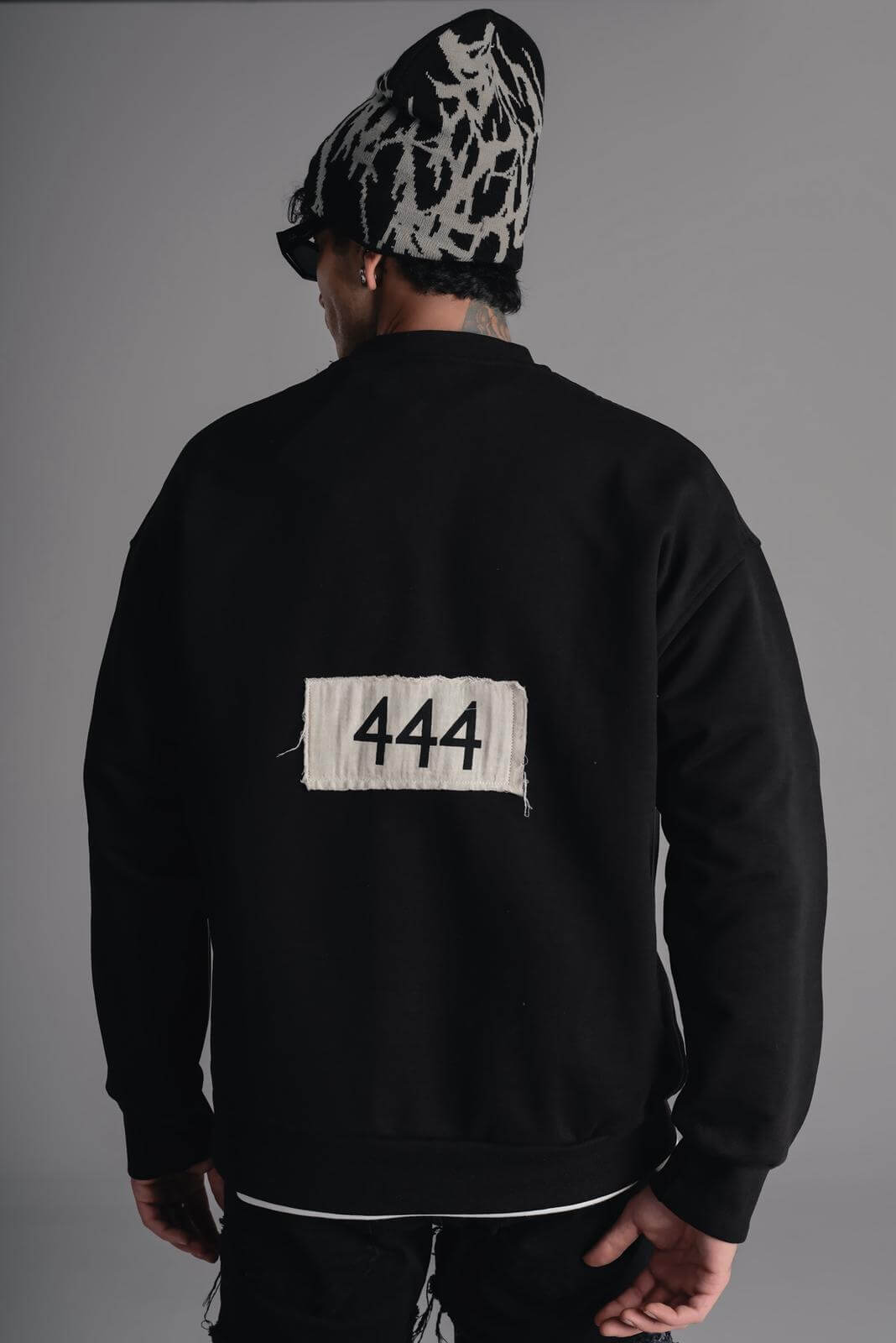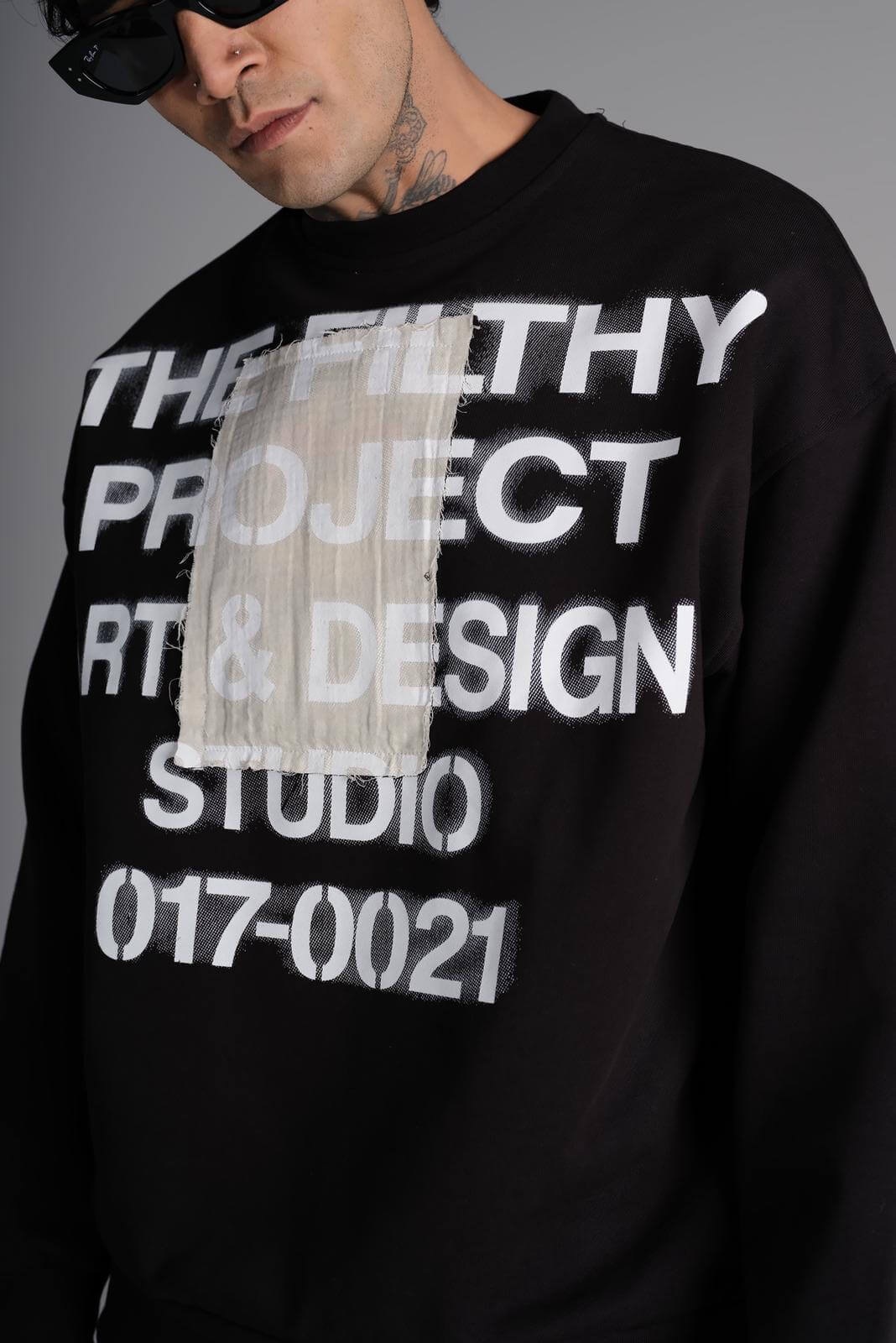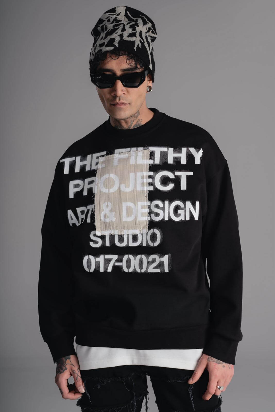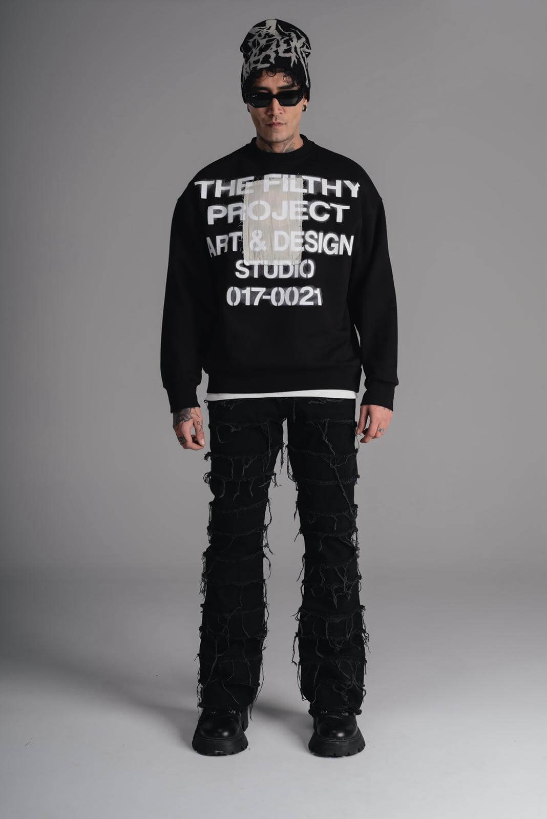 Czarna bluza męska o luźnym, nowoczesnym kroju, inspirowana estetyką streetwear i artystycznym designem.