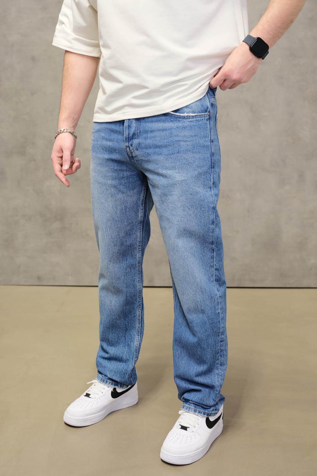 Męskie spodnie jeansowe w klasycznym, ciemnoniebieskim odcieniu, inspirowane stylem vintage. Wykonane z solidnego, a jednocześnie komfortowego denimu, zapewniają wygodę na co dzień i dobrze trzymają formę. Prostsza nogawka i swobodniejszy krój sprawiają, że spodnie świetnie sprawdzą się w codziennych, casualowych stylizacjach – od T-shirtu po bluzę czy sweter. Idealna propozycja dla osób, które cenią ponadczasowy, męski denim bez zbędnych dodatków.