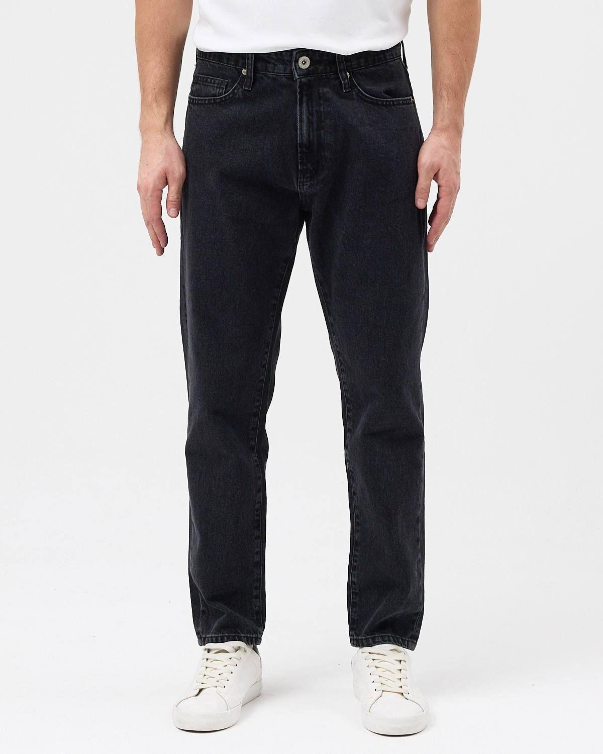 Męskie spodnie jeansowe w klasycznym czarnym kolorze o ponadczasowym fasonie. Model o prostym kroju, który zapewnia swobodę ruchów i wygodne dopasowanie do sylwetki. Uniwersalny design sprawia, że spodnie świetnie komponują się zarówno z casualowymi, jak i bardziej uporządkowanymi stylizacjami. Wykonane z wysokiej jakości bawełny, gwarantują trwałość oraz komfort codziennego użytkowania.